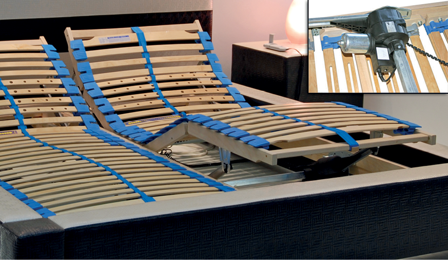 - Flexible slats adjustable completely to the body anatomy by means of electro-motor